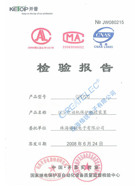 當前位(wèi)置: 公司(si)資質 型(xíng)式檢驗(yan)報告/3C證(zheng)書 > 電動(dong)機保護(hù)